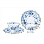 NARUMI(ナルミ) カップ ソーサー セット ミラノ 160cc ブルー 花柄 梅の花 更紗調 メッシュ ペア コーヒーカップ&ソーサー 結