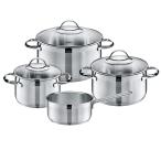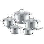 【並行輸入品】Silit ソースパン 4点セット キャセロールソースパン ステンレススチール 光沢仕上げ メノウ エッジ ガラス蓋 IH調理器対