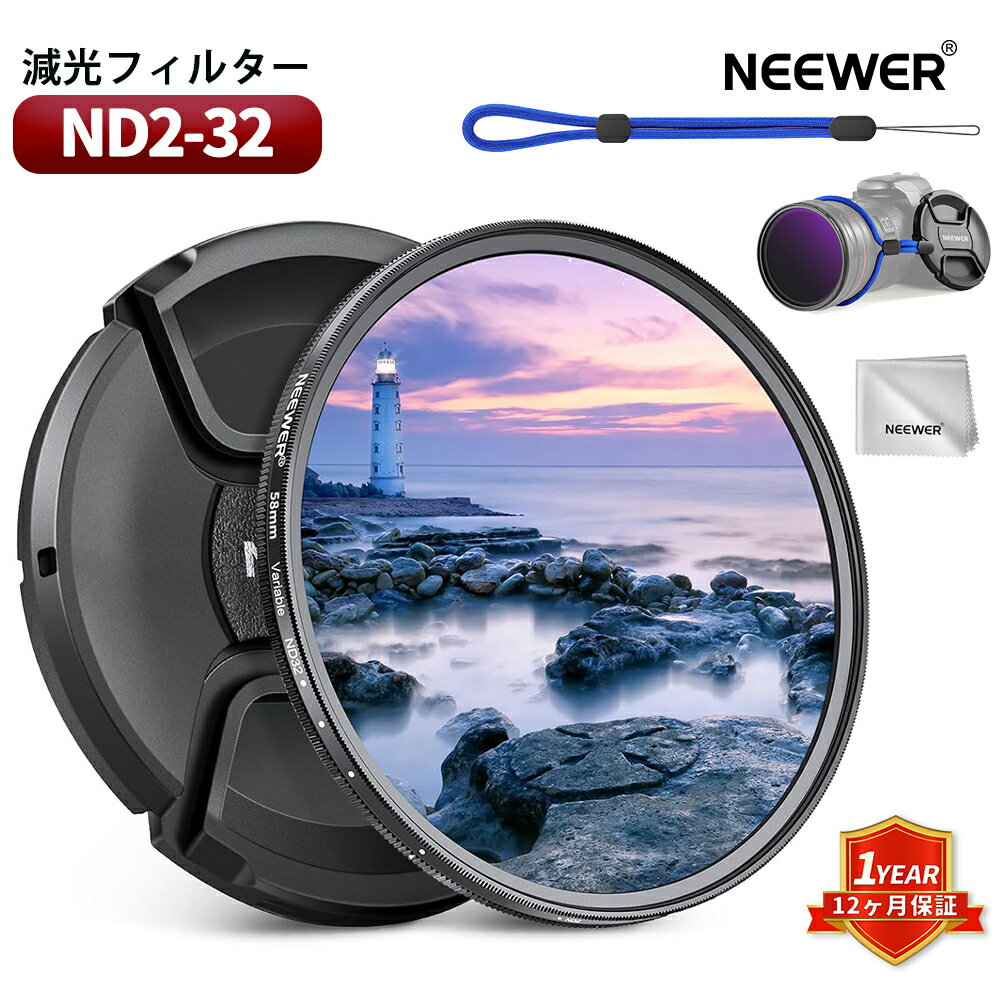 【20%OFFクーポン】NEEWER 可変NDフィルター ND2-32 (1-5ストップ) レンズキャップ/クリーニングクロス付き 中性濃度 調整可能 マルチコート光学ガラス 減光フィルター カメラ写真アクセサリ 58mm/67mm/72mm/77mm/82mm