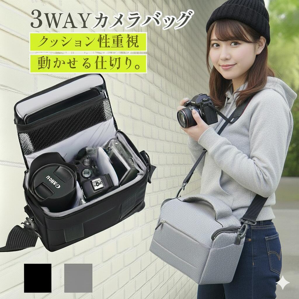 カメラバッグ Mサイズ カメラケース 一眼レフ ショルダー バック 大容量 レンズ収納 おしゃれ コンパクト ブラック グレー ミラーレス