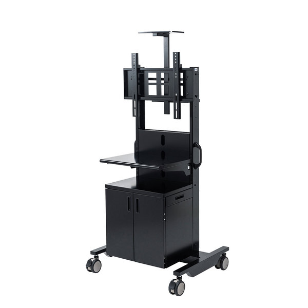 【送料無料】 SANWA SUPPLY(サンワサプライ)テレビ会議用ディスプレイスタンド CR-PL39BK65型 ディスプレイ テレビ会議 収納 ボックス カメラ台 機器設置用棚板 ボックスサイド リモコン 引き出し VESA 機器 スピーカー 棚板 背面 カメラ台付き 二重構造
