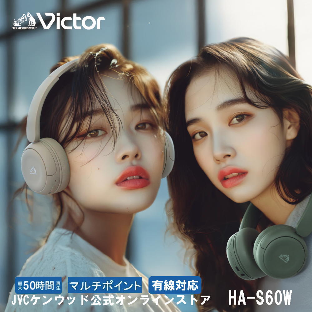 Victor 長時間再生 高音質 ワイヤレスヘッドホン HA-S60W | マルチポイント ブルートゥース5.4 ビクター JVC ケンウッド 通話可能 プレゼント オンライン会議 blutooth5.4 有線対応 折りたたみ 軽量 5つのサウンドモード 連続約50時間長時間再生 アプリ対応