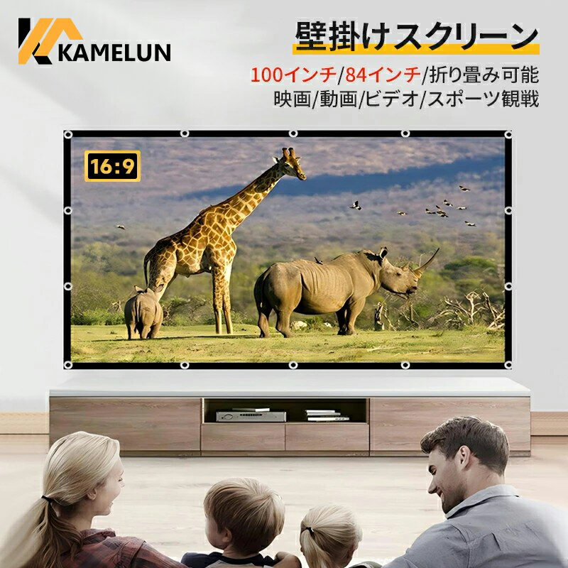 プロジェクタースクリーン 100インチ 84インチ 軽量スクリーン 折りたたみ ホームシアター 4K対応 高画 質 壁がけ式 大画面 持ち運び可 プロジェクター用 屋外映画 投射壁 会議 大型 高解像度 16:9 学校 家庭用 投影用 【送料無料】