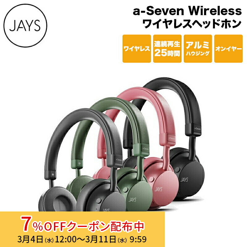 [7%OFFクーポン 11日朝まで](在庫限り)JAYS Bluetooth ワイヤレスヘッドホン a-Seven Wireless 全4色 JS-ASEWシリーズ ジェイズ ヘッドホン 無線 連続再生25時間 オンイヤー iphone ブルートゥース スウェーデン iphone15 スマホ pc 国内正規品 新生活 キャンセル不可