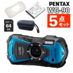 ペンタックス デジタルカメラ WG-90 ブルー プロテクター&SDカード&バッテリー&カメラケース付き 5点セット(レビュー特典あり)