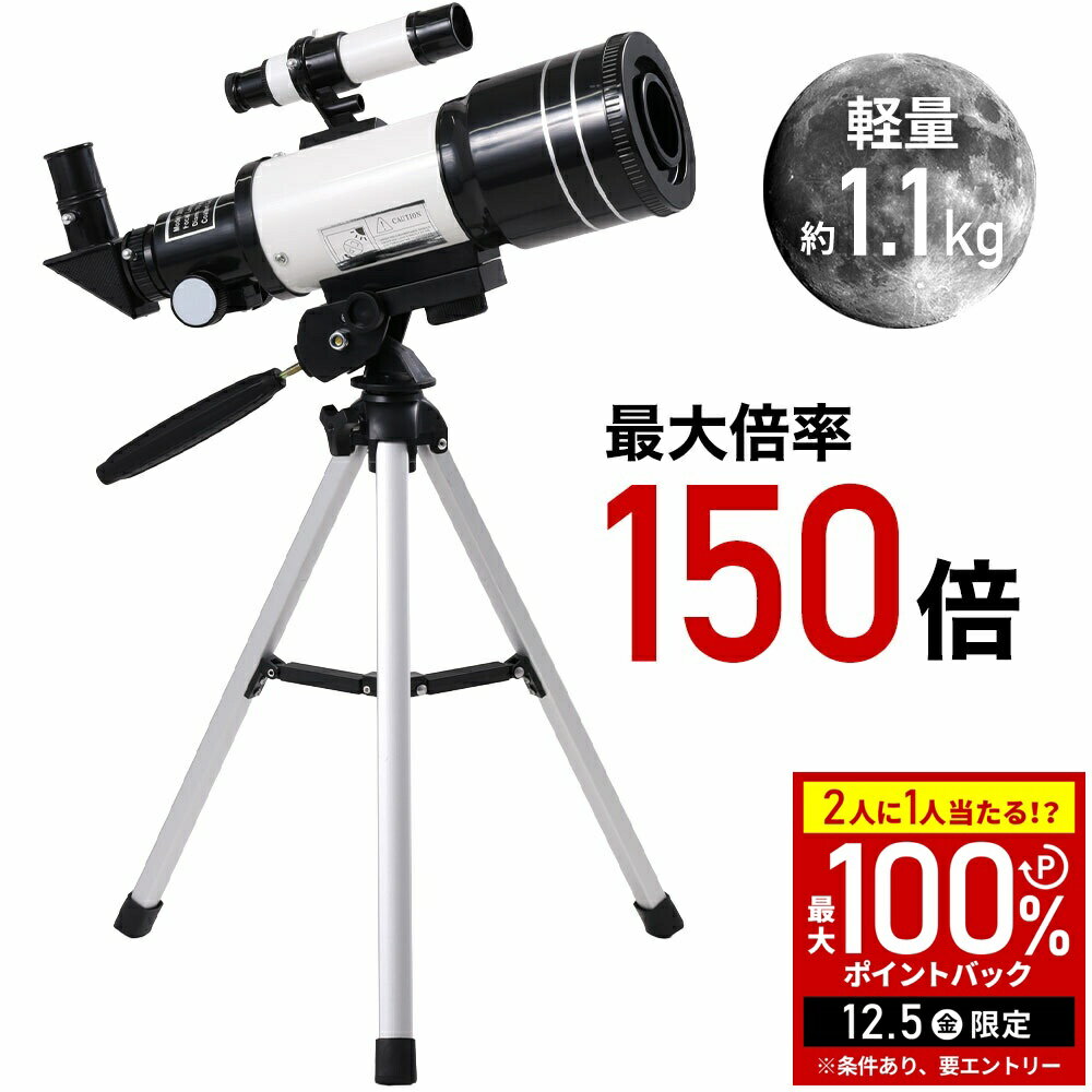 【当選確率1/2抽選で最大100%ポイントバック5日限定】 天体望遠鏡 小学生 初心者 最大150倍 三脚 天体観測 バードウォッチング 夜空 星空 自然観察 子供 中学生 高校生 キッズ 口径70mm 焦点距離300mm 屈折式 夏休み 自由研究