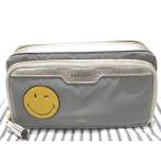 ANYA HINDMARCH アニヤハインドマーチ メイクポーチ ◇ SMAILEY シルバーグレー系 レディース バッグ ミニ ナイロン レザー ▼8D