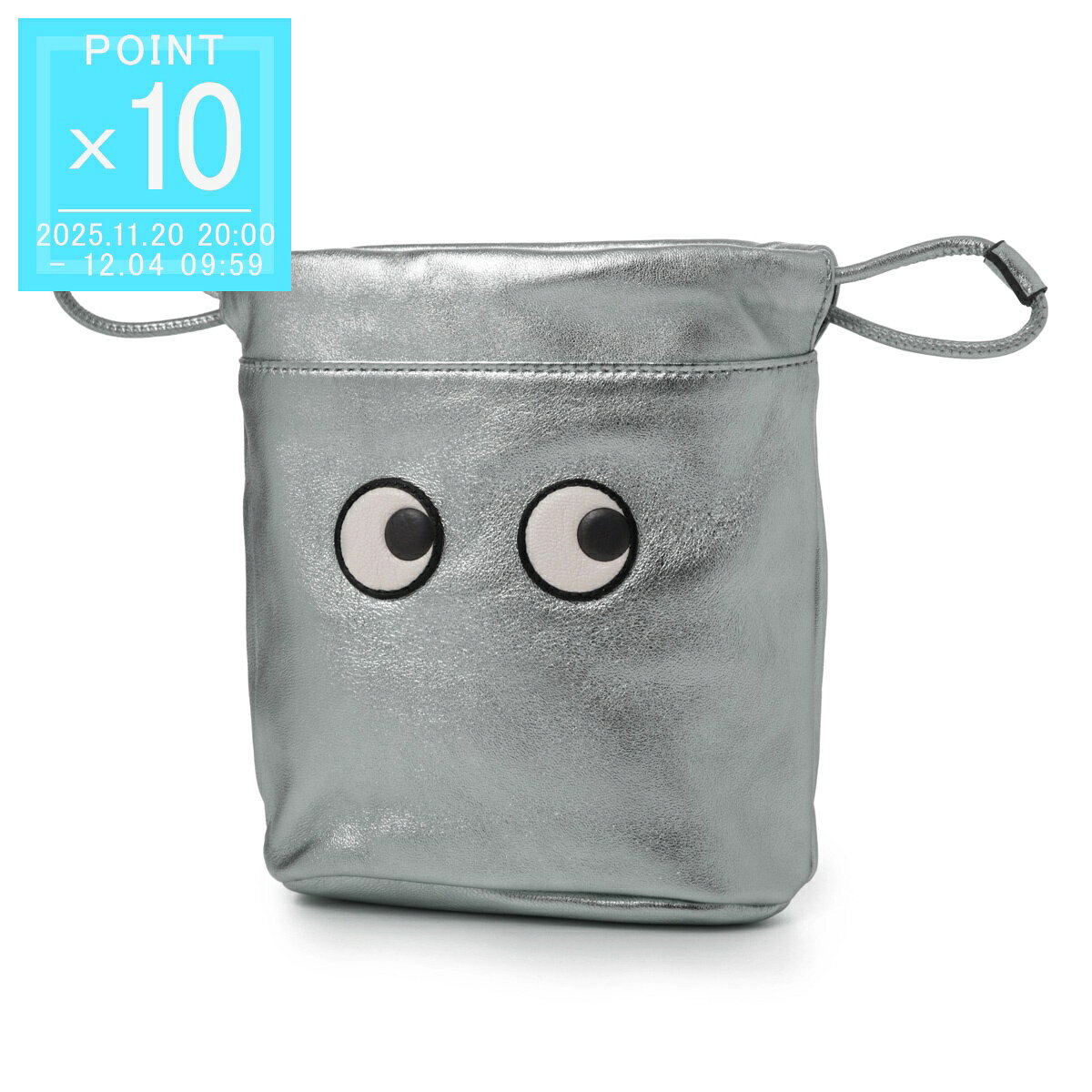 アニヤ・ハインドマーチ ANYA HINDMARCH ポーチ ミニバッグ シルバー レディース 179225 steel DRAWSTRING POUCH EYES IN METALLIC NAPPA【返品送料無料】