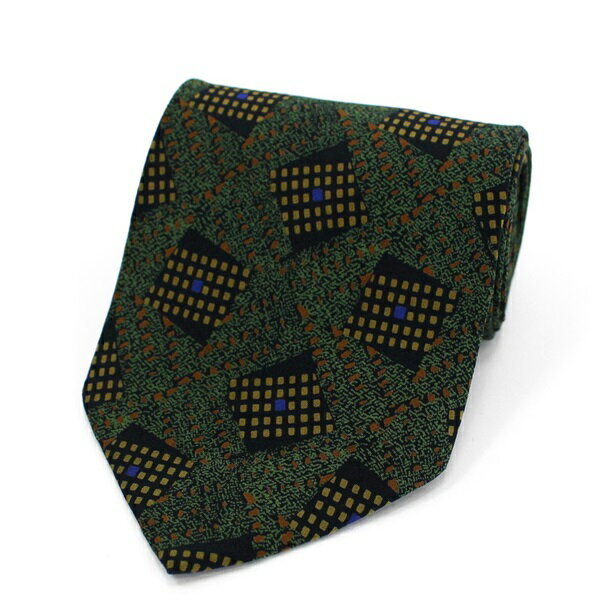 【最大50%OFFクーポン配布中】エンポリオ・アルマーニ ブランド ネクタイ 総柄 パネル柄 シルク イタリア製 PO メンズ カーキ Emporio Armani 【中古】