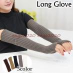 指なし手袋 アームウォーマー ニット 長め アームカバー ロング丈 リブ編み 手ぶくろ 指穴 スマホ対応 毛糸