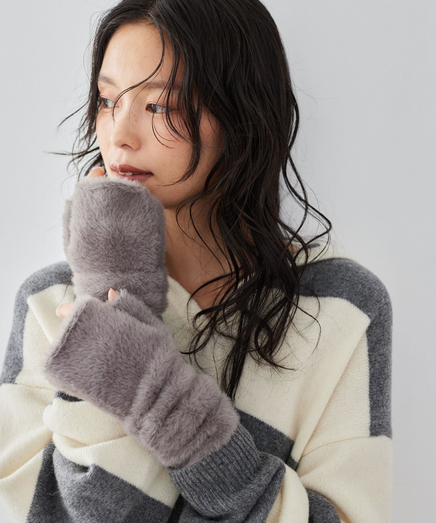UNFILO 【WEB/一部店舗限定】ふわふわニット アームウォーマー アンフィーロ ファッション雑貨 手袋 グレー ネイビー ブルー ブラウン ピンク【送料無料】