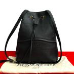 極 美品 袋付 YVES SAINT LAURENT イヴ・サンローラン ヴィンテージ YSL ロゴ エンボス 巾着 レザー 本革 ショルダーバッグ ブラック 145-2