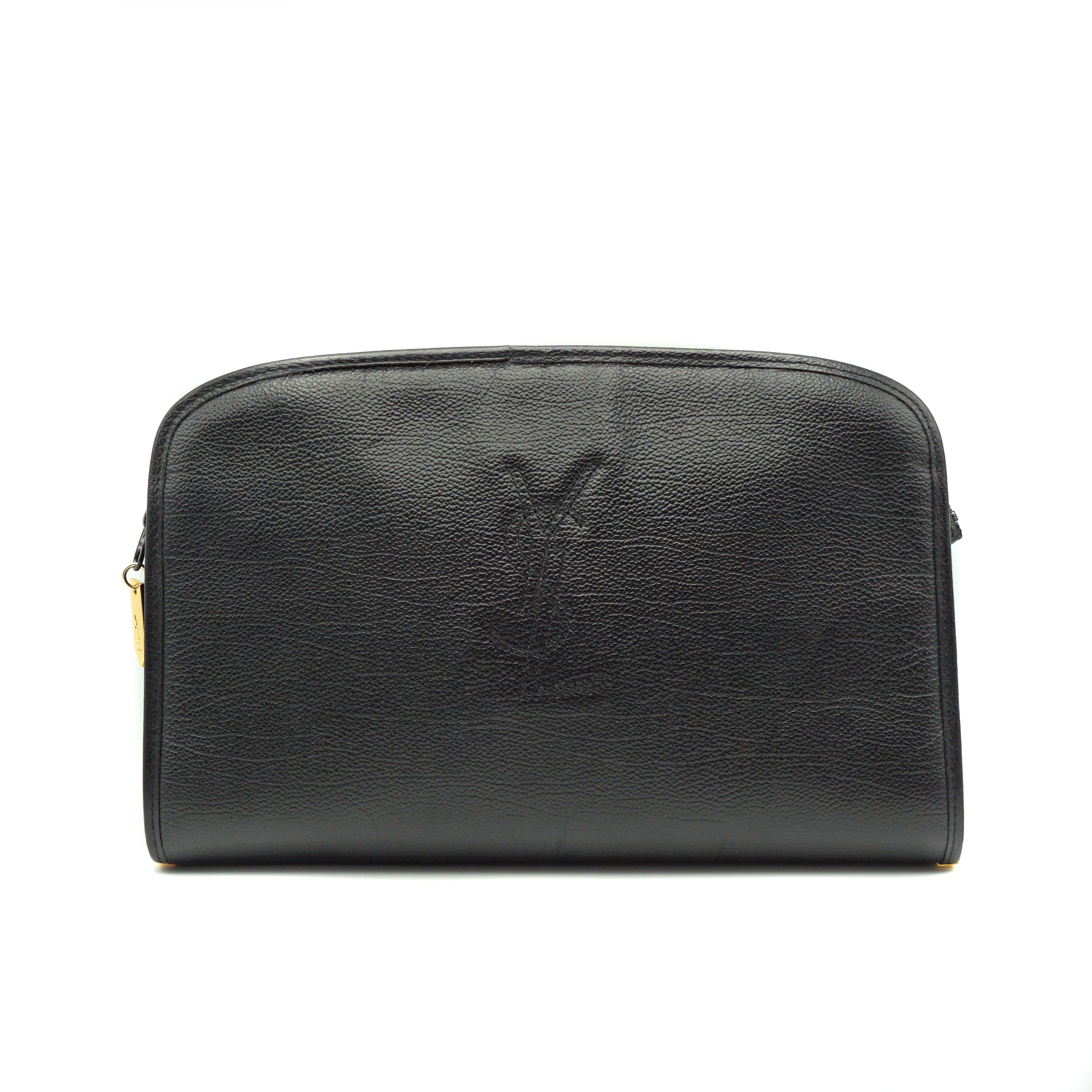 イヴサンローラン Yves Saint Laurent セカンドバッグ レザー ブラック レディース メンズ クラッチバッグ YSL 【中古】