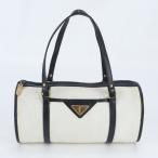 【中古】YVES SAINT LAURENT “イヴサンローラン” ミニボストン ハンドバッグ ロールボストン ゴールド金具 筒形 ヴィンテージ オールド ブラック×ブラウン【鹿児島店】