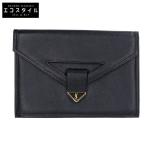 イヴサンローラン 二つ折り財布 ロゴ 中古 ブラック レザー YVES SAINT LAURENT 【中古】 | コンパクトウォレット レディース ファッション サイフ 黒 ブランド小物 シンプル ABランク