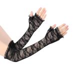 uxcell レース 指なし手袋 結婚式 フィンガーレスグローブ アームカバー UVカット 日焼け止め ブラック S