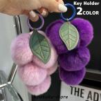 キーホルダー キーリング バッグチャーム レディース ぶどう ポンポン エコファー ふわふわ もこもこ 可愛い 大きめ カラビナ付き