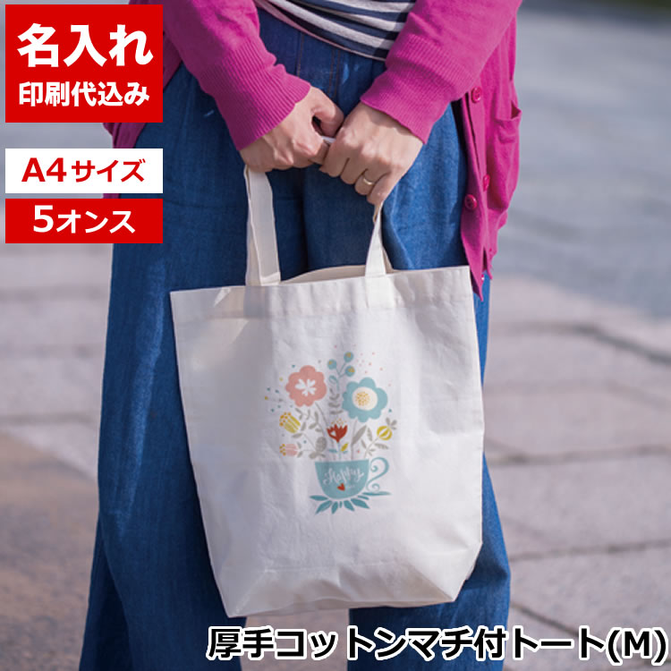名入れ 30枚~【 厚手コットンバッグ(M)ナチュラル 1色印刷代込み TR-0760】A4 エコバッグ トートバッグ オリジナルバッグ エコバッグ名入れ 中厚手 コットンバッグ名入れ 手提げバッグ サブバッグ 無地 販促品 記念品 ノベルティ 制作 50 100 200 300 400 500 1000