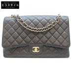 CHANEL シャネル 13番 黒 キャビア G金具 シングルフラップ デカマトラッセマキシ34 ショルダーバッグ