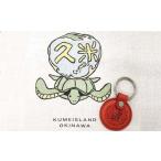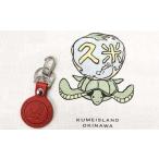 ふるさと納税 小物 沖縄県 久米島町 久米島の亀ロゴ入りキーホルダー(1枚革:赤)+エコバッグセット