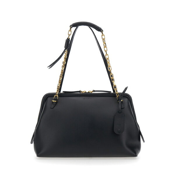 エトロ レディース ショルダーバッグ バッグ Black Shoulder Bag With Chain-link Shoulder Strap And Tag With Embossed Logo On The Front In Leather Woman Black