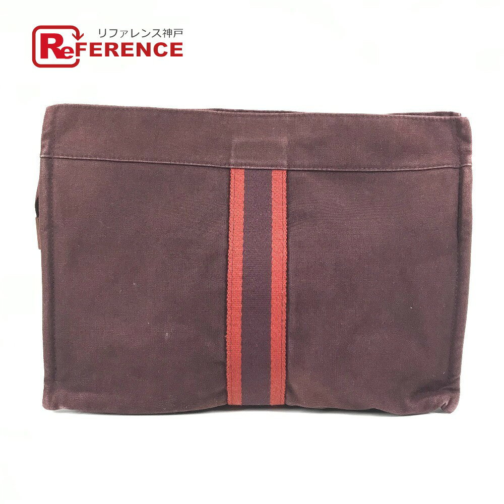 HERMES エルメス フールトゥ カバン ポーチ バッグ セカンドバッグ クラッチバッグ コットン ユニセックス ワインレッド 【中古】