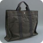 エルメス トートバッグ エールライン カバス キャンバス グレー 中古