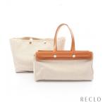 HERMES エルメス ガーデンパーティPM トートバッグ ハンドバッグ トワルアッシュ キャンバス レザー ベージュ ダークブラウン 【中古】