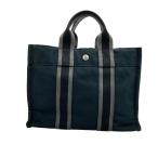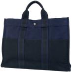 エルメス HERMES フールトゥ MM ハンドバッグ トートバッグ キャンバス ネイビー ブラック レディース 中古
