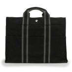 (美品)HERMES エルメス フールトゥ MM キャンバス ブラック グレー トート ハンドバッグ シルバー金具