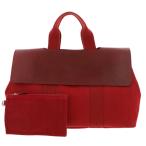 HERMES エルメス トワルシェブロン ヴァルパライソMM ハンドバッグ キャンバス レザー レッド ユニセックス 中古