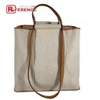 (中古)エルメス HERMES エールライン トート MM ハンドバッグ キャンバス グレー シルバー金具