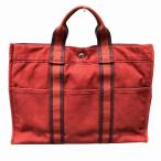 エルメス HERMES フールトゥ MM ハンドバッグ トートバッグ キャンバス レッド レディース 中古 在庫一掃