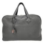 エルメス ビジネスバッグ ヴィクトリア40 ハンドバッグ ブラック T刻印 トゴ シルバー金具 メンズ レザー カデナ HERMES 中古 ◆2008