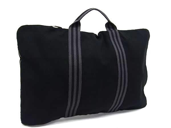 HERMES エルメス ビジネスバッグ フールトゥ ポルトドキュマン ブラック系 キャンバス ユニセックス ブリーフケース シルバー金具 美品【本物保証】【中古】