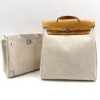 エルメス HERMES エールバッグアドPM □H刻 ベージュ・ゴールド SV金具 トワル・レザー リュック・デイパック レディース 中古