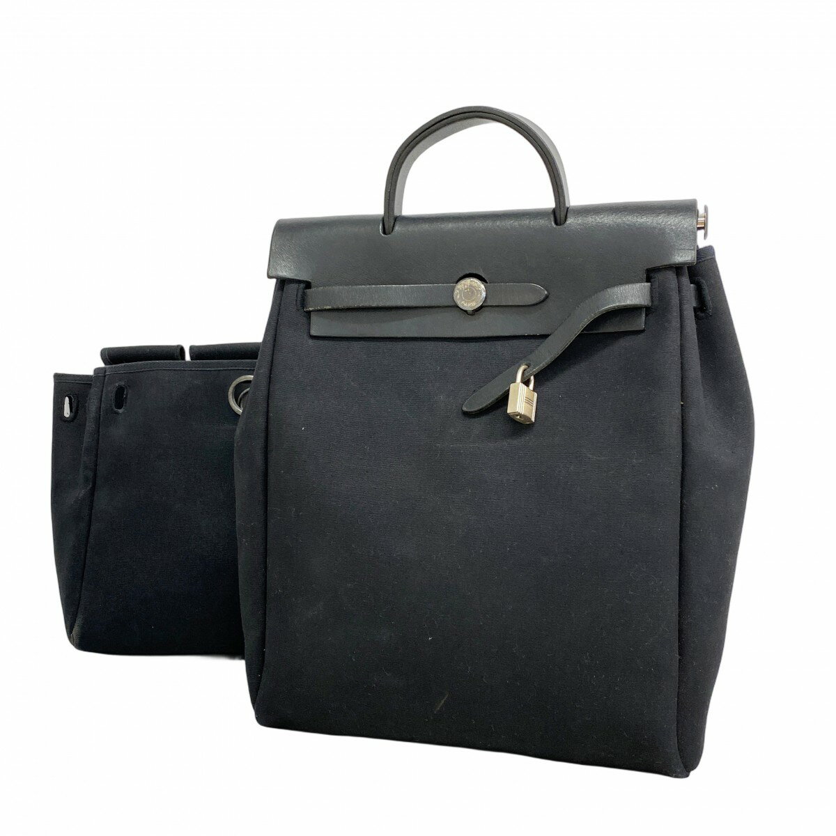 HERMES エルメス リュック エールバッグアドPM ブラック/シルバー金具 キャンバス/カーフ □G刻印(2003年頃) 替えバッグ 2148103916175【471】 【471】2148103916175 【中古】【大黒屋】