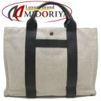 HERMES エルメス サックアーネMM トートバッグ コットンキャンバスxレザー グレー ブラック メンズ /253634【中古】