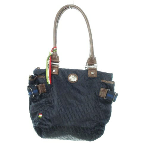 【中古】オロビアンコ OROBIANCO トートバッグ ナイロン ベルトデザイン レザー ジャガード ロゴ 総柄 紺 ネイビー /MN14 ■GY18 メンズ 【ベクトル 古着】 251017