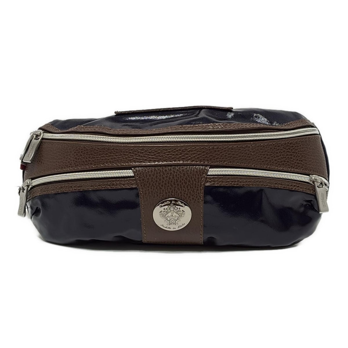【中古】OROBIANCO(オロビアンコ) ウエストポーチ ネイビー×ダークブラウン レザー