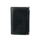 【送料無料 美品】 カルティエ Cartier マストライン 二つ折りカードケース 名刺入れ パスケース 定期 レザー ブラック メンズ レディース