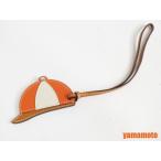 送料無料 HERMES エルメス チャーム バッグチャーム パドック ボンベイ 帽子 キャップ レザー オレンジ ホワイト ブラウン 美品