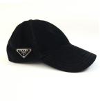 プラダ キャップ ベースボールキャップ 2HC274 ブラック コーデュロイ コットン100% Mサイズ 中古 帽子 ロゴ