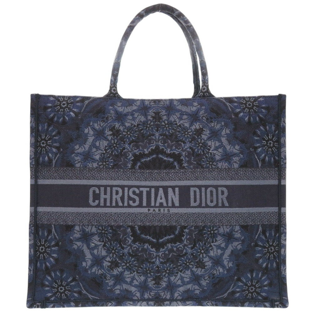 美品 クリスチャンディオール ブックトート ラージ キャンバス ネイビー トートバッグ 0708【中古】Christian Dior