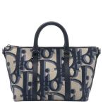 Christian Dior(クリスチャンディオール) サイズ:- オブリーク ブックトートバッグ ハンドバッグ ネイビー ラージ キャンバス【中古】【程度B】【カラーネイビー】【取扱店舗BRING札幌店】