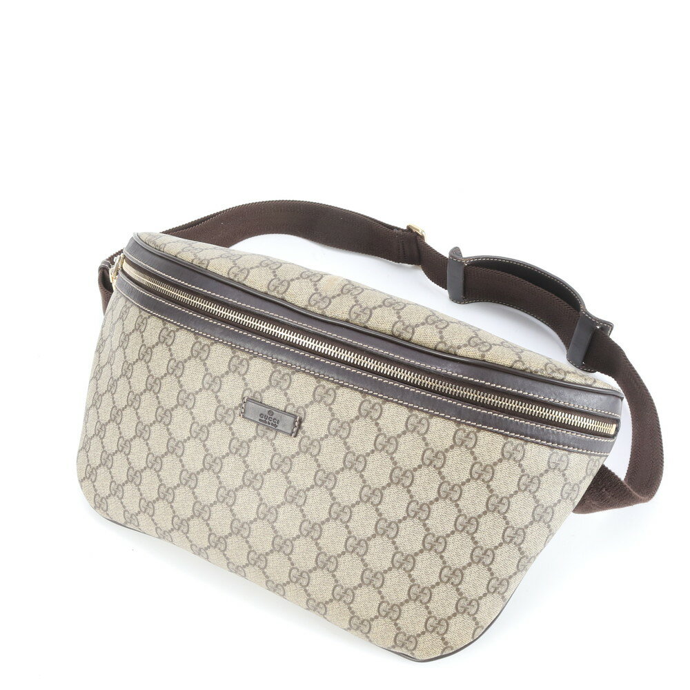 美品 グッチ GG スプリーム 211110 レザー 2WAY ボディバッグ 斜め掛け ボディ ウエストポーチ ショルダー メンズ EEE DB28-1