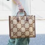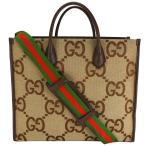 グッチ GUCCI ジャンボGG トートバッグ 2way ショルダーバッグ 678839 ブラウン ベージュ 茶 キャンバス レザー 【中古】