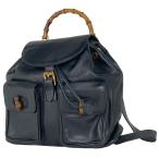グッチ GUCCI バンブー リュックサック デイパック バックパック 00320580016 オールドグッチ リュック レザー ネイビー レディース 中古