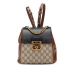 グッチ GGスプリーム パドロック リュック バックパック 498194 ブラウン ブラック ベージュ PVC レザー レディース GUCCI 【中古】