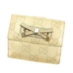 【週末タイムSALE★30%OFF】グッチ Wホック財布 二つ折り財布 レディース リボンモチーフ付き グッチシマ ベージュ×ゴールド 中古